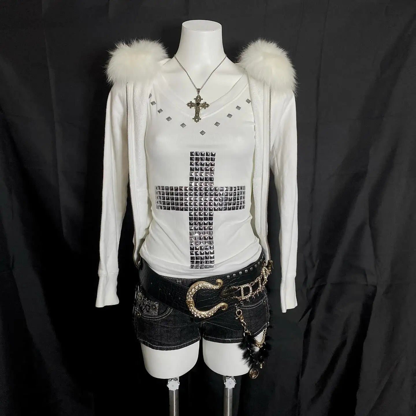 American New Y2K Hip-Hop Pattern Printing Warm Zipper Hooded Sweater Women's Street Fashion Trend Plus Velvet Padded Sweatshirt