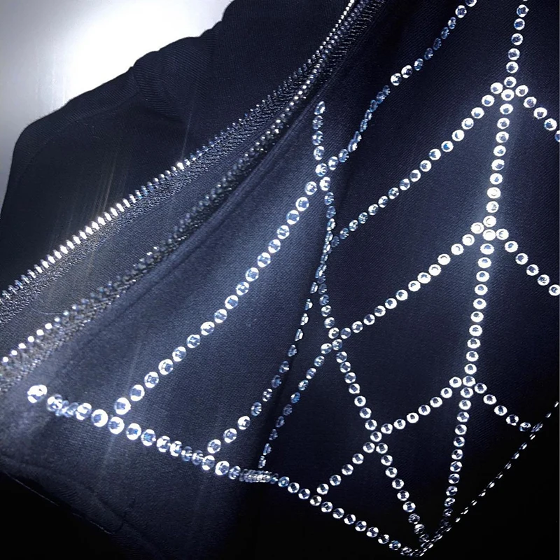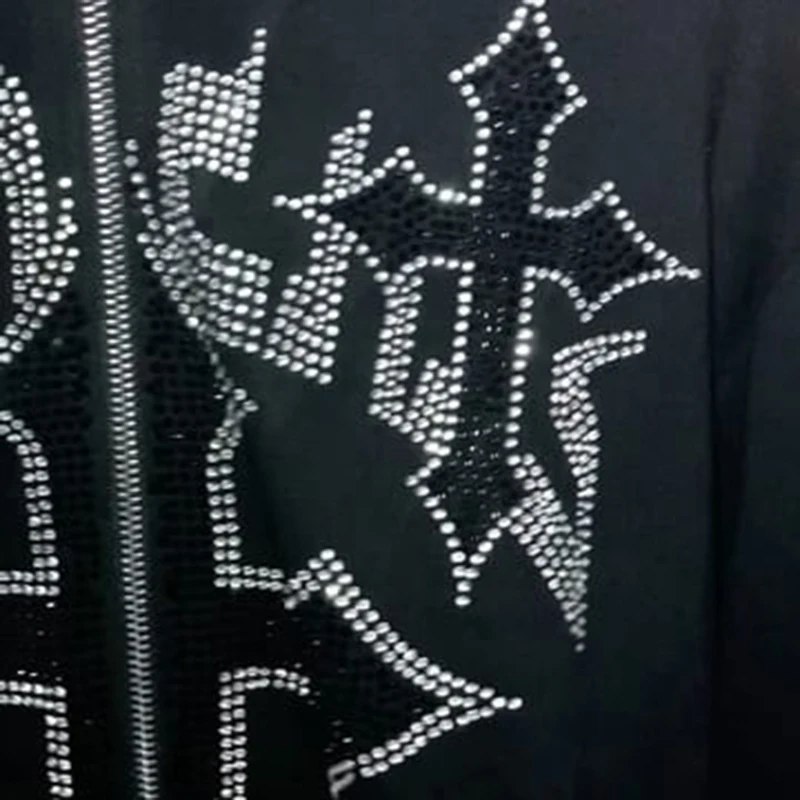 Cross Rhinestone Studded Zipper Jacket
